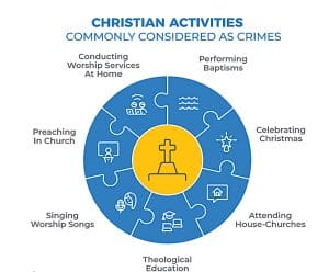 Christian activities seen as crimes in Iran in graphic from Article 18 report. (Article 18)